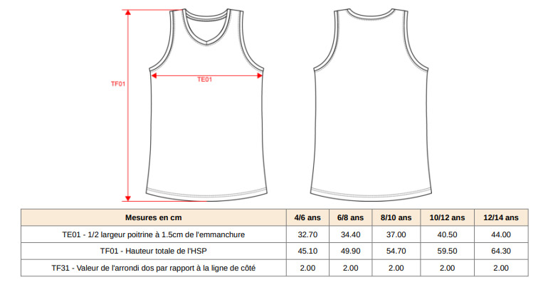 Charte de tailles :